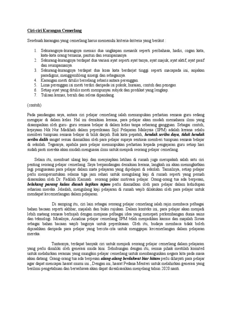 Ciri Ciri Pelajar Cemerlang Karangan Pt3 / Watikah Dari Hati Karangan Bahasa Melayu Pmr Ciri Ciri Murid Cemerlang. Panjangnya huraian anda antara 200 hingga 250 patah perkataan. Salah satunya ialah cemerlang dalam akedemik. Menjadi seorang murid yang berkualiti adalah impian setiap pelajar.